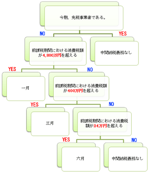 前年度の確定した所得税、法人税、消費税等の金額が、それぞれ一定の金額以上の場合には、翌期において、中間納付(所得税については、予定納税)により、一定金額を納付しなければなりません。